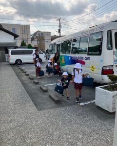 10月の運動会に向けて、第二小学校の行程をお借りして練習をしています。